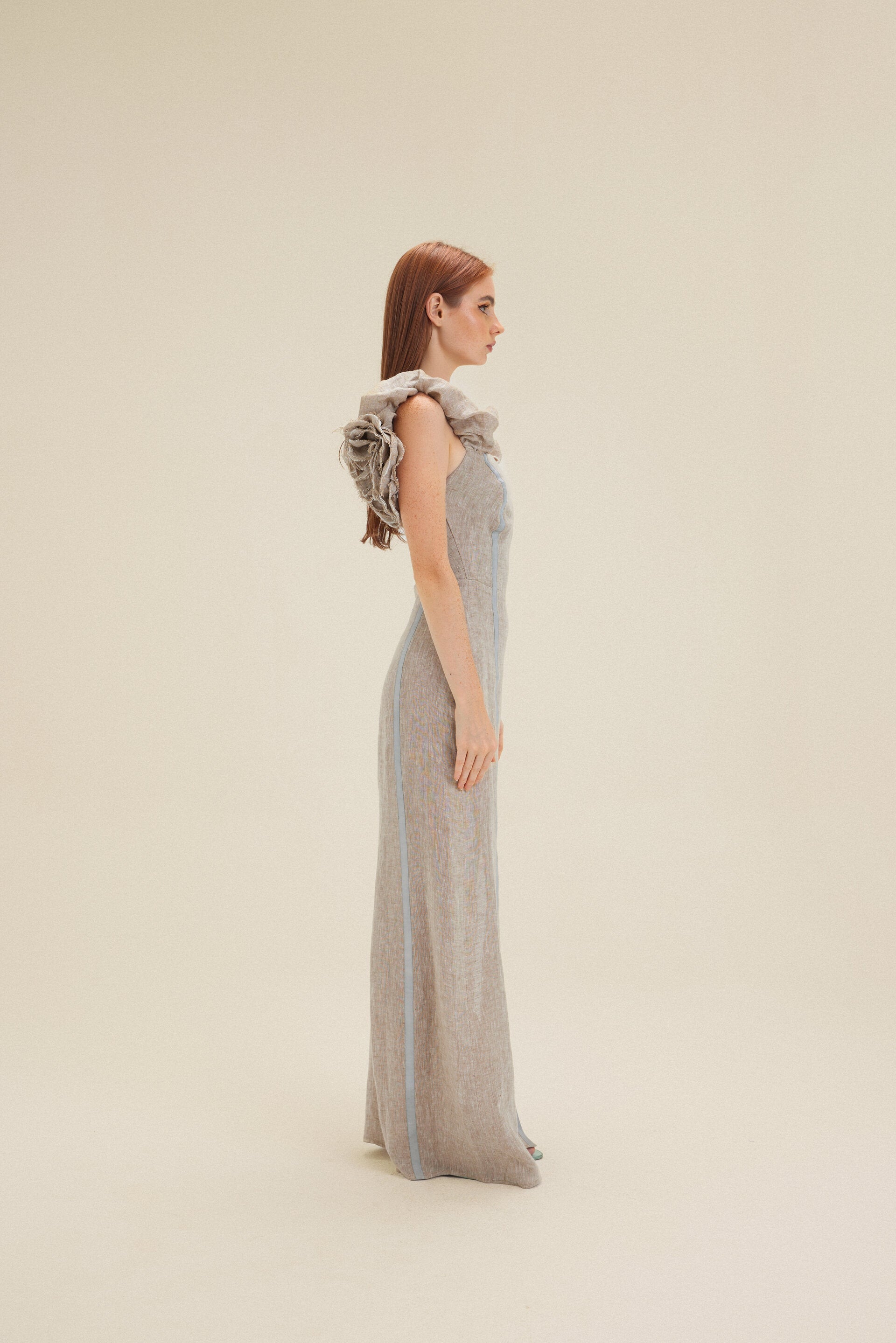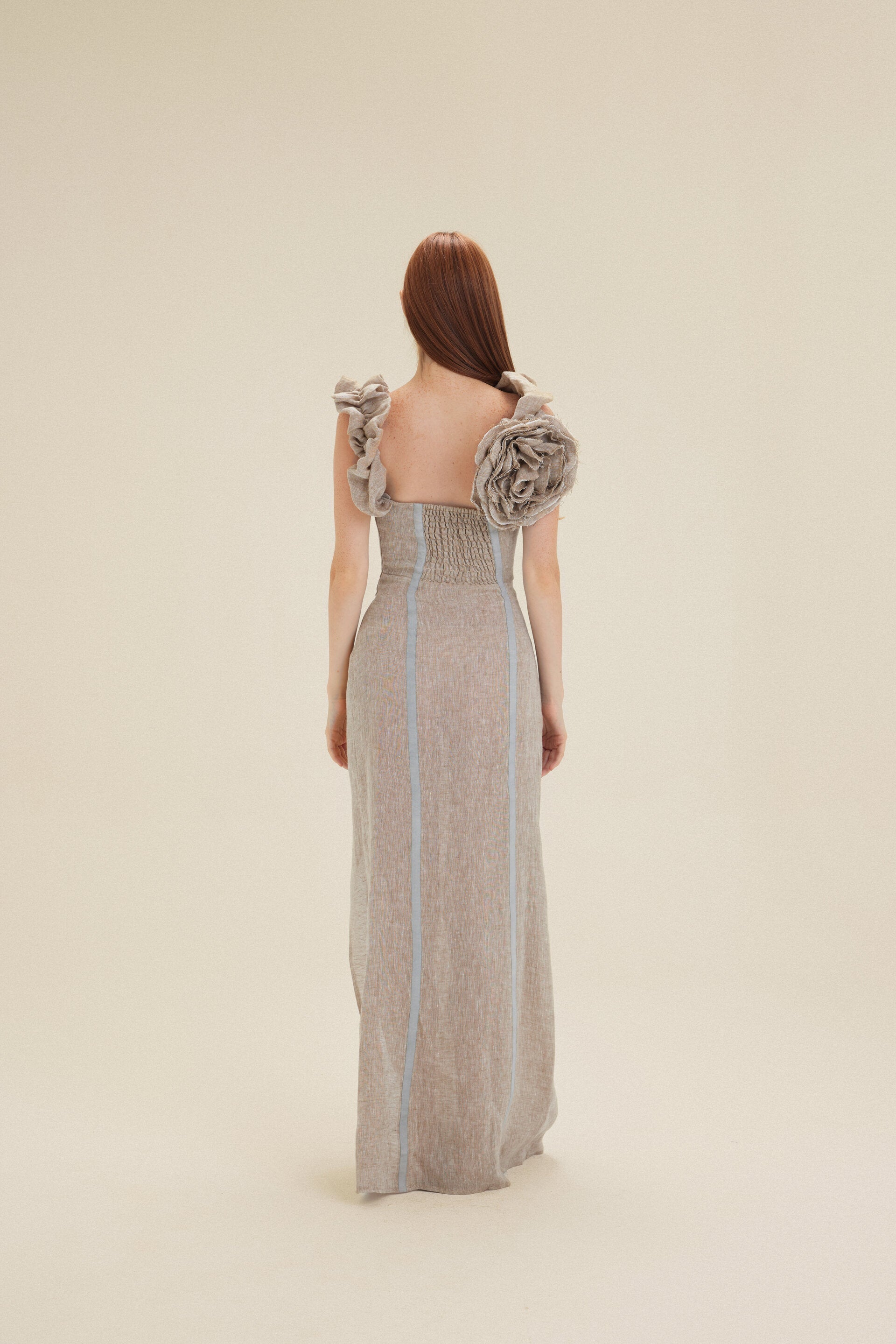 Beige Flower Linen Dress