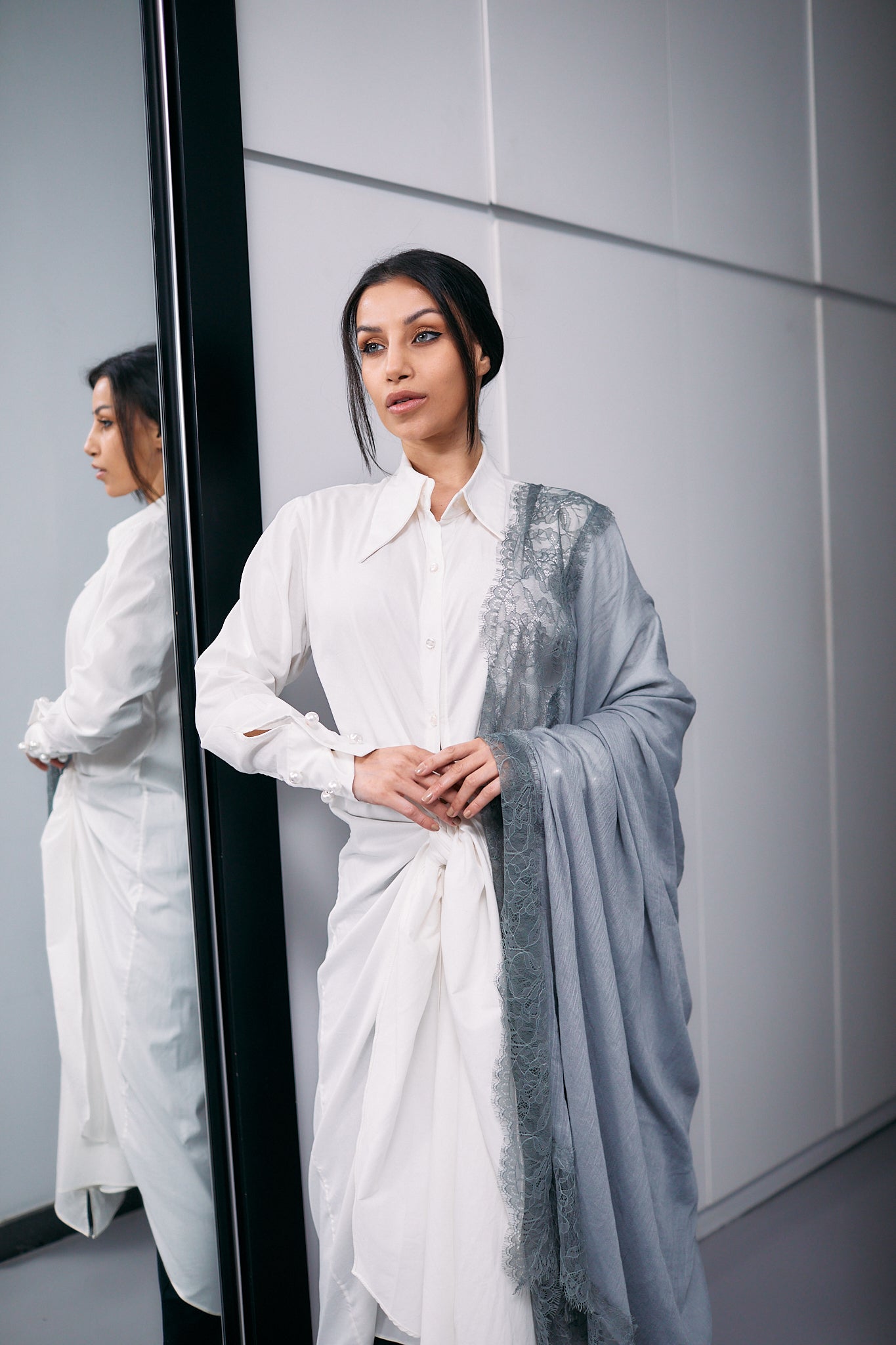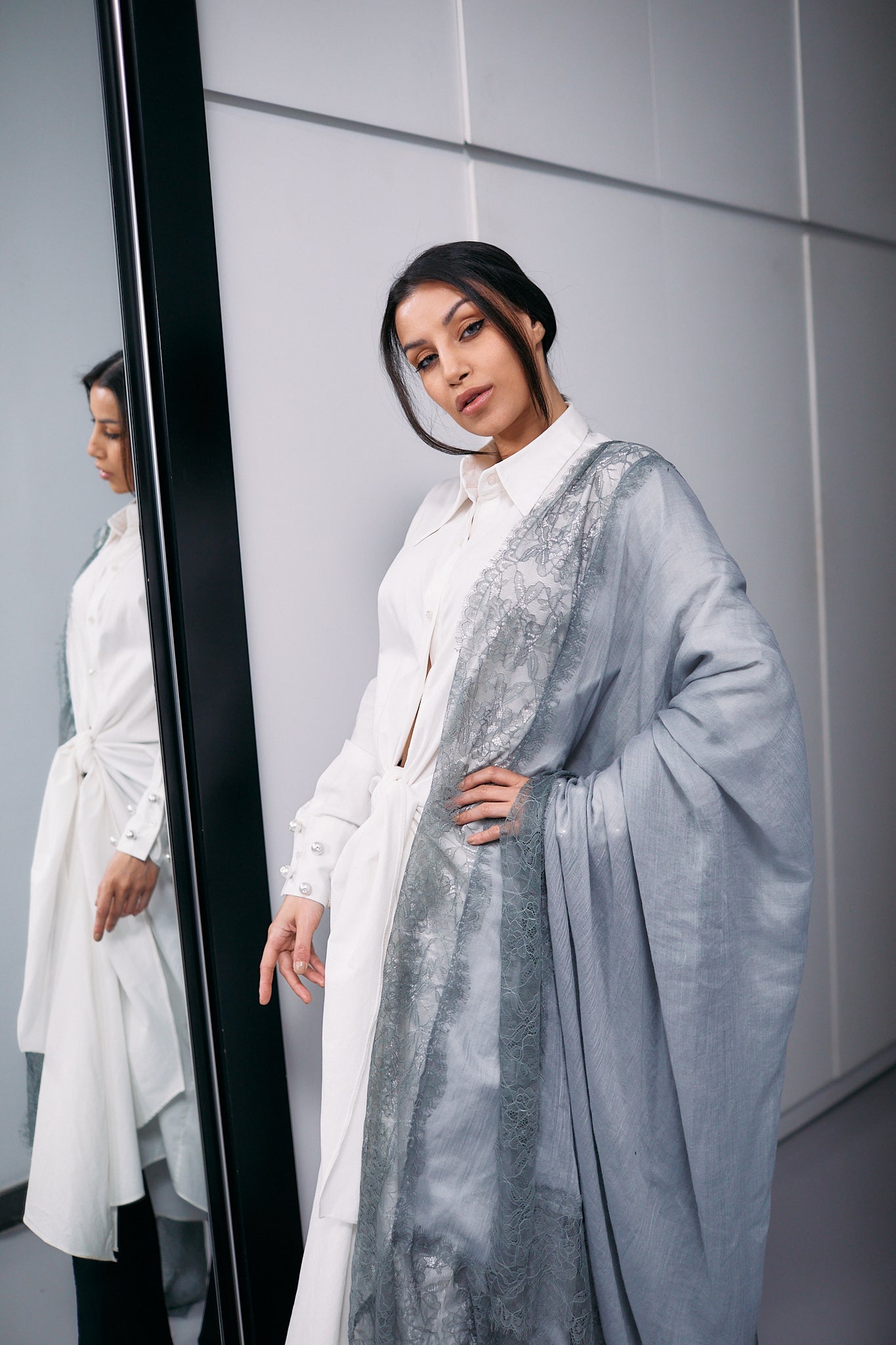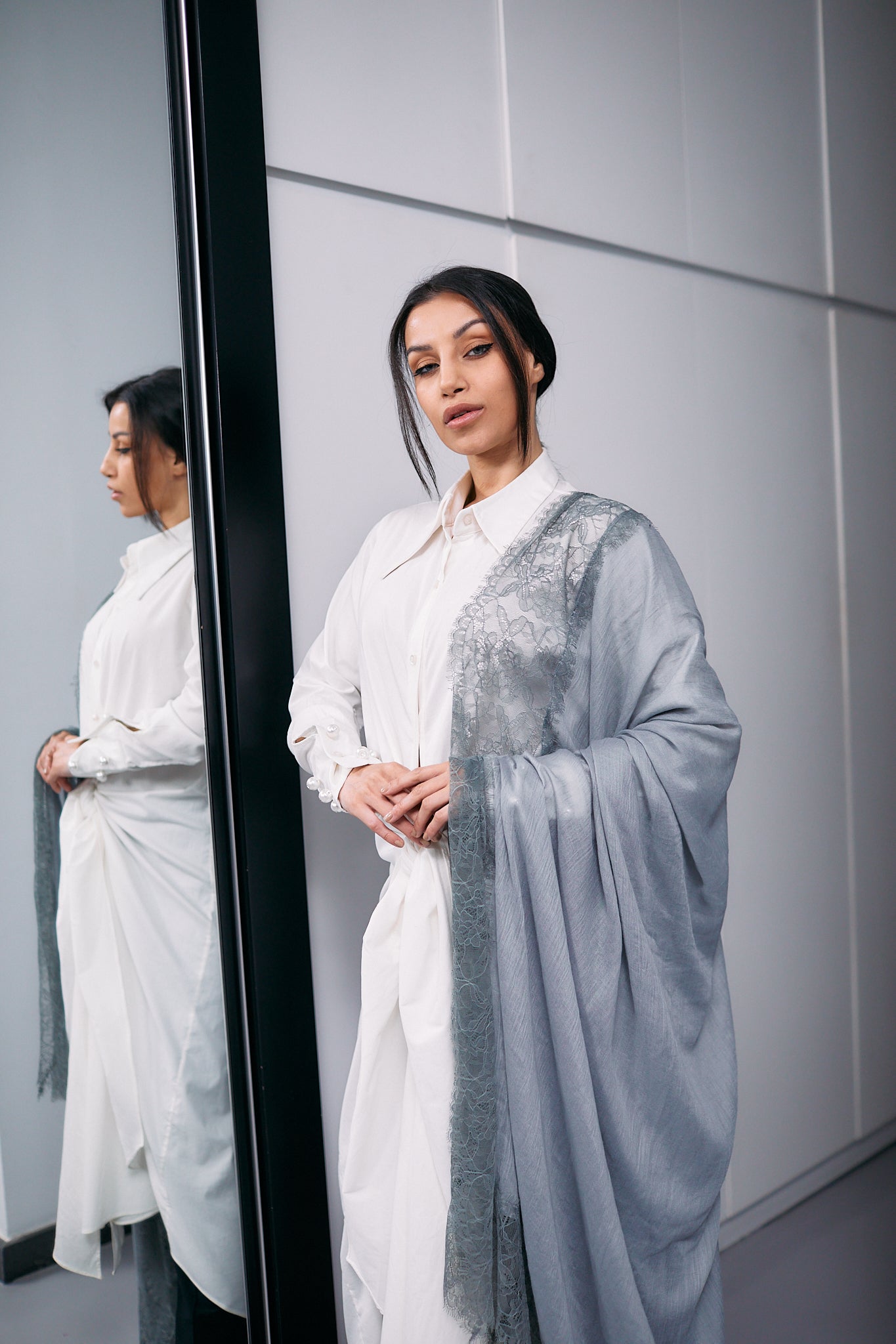 Grey Cashmere Shawl With Grey Dantel